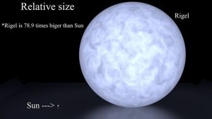 Orion Nebula তে বিভিন্ন আকারের প্রায় ৩০০০ নক্ষত্র আছে । যার মধ্যে অন্যতম হচ্ছে “Rigel” । এটি পৃথিবীর আকাশের ৭ম উজ্জ্বলতম নক্ষত্র এবং Orion constellation এর সবচেয়ে উজ্জ্বল তারা ।আমাদের সূর্যের চেয়ে ২০০,০০০ গুন বেশি উজ্জ্বল এই তারাটি হল একটি Blue-White Super Giant ।