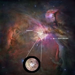 Trapezium এর চারপাশে রয়েছে গ্যাস ডিস্ক সহকারে ঘূর্ণ্যমান কম বয়সী অসংখ্য তারা । যার চারপাশ জুড়ে তৈরি হচ্ছে নতুন নতুন গ্রহ-উপগ্রহ । এছাড়াও নীহারিকাটিতে রয়েছে আরও কিছু নক্ষত্র যাদের চারপাশে ও গ্যাস ডিস্ক আছে । কিন্তু এদের ঘটনা বাকিদের চেয়ে ভিন্ন । এদের ঘিরে থাকে শক্তিশালী চুম্বকক্ষেত্র । এদের থেকে খুব দ্রুত গতিতে গ্যাস নিঃসরণ হতে হতে একটা সময় বন্ধ হয়ে যাবে । তারাও আমাদের সূর্যের মত তারায় পরিণত হবে । উল্লেখ্য যে সব মহাজাগতিক গ্যাস আর ধুলাই যে নক্ষত্র তৈরি করবে , এমনটা নয়।